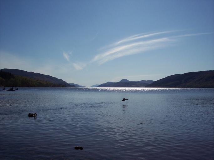 Keywords: loch ness lake loch highlands scottish fresh water sky clouds scenic water reflection hills scotland