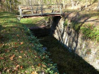 Keywords: Lock 60 C and O Canal from NPS.jpg en Lock 60 3rd Composite lock on Chesapeake and Ohio Canal NPS site says Lock 60 is the third of the 13 composite locks These locks differ from the other locks on the canal Between the upper end of the lower gate pockets to the lower end of the upper gate pockets the stone walls were moved 9 and one-quarter inches on each side resulting in a clear dimension between lock walls of 16 to 16 and one-half feet rather that the 15 feet previously adhered to The normal clear dimension was resumed both up and down from these points The walls were of rough-cut and rough-coursed limestone principally dry-laid where the walls were widened and mortared in the other areas The wider area was filled in with 5 one-quarter inch square timbers This wooden section of the lock was water-proofed at first by being kyanized and later with creosote The wood timbers required frequent replacing and around 1900 many repairs were made by stripping out the wood and pouring a cement liner but at Lock 60 cement was not used All of the wood coping and most of the wood lining at Lock 60 is gone but a few remnants remain In the mid-1870s Lock 60 was extended at its lower end by rock-filled wood cribbage in order to double its length The wooden portion of the extension is gone but the lines of rock remain National Park Service http //www hscl cr nps gov/insidenps/report asp STATE PARK CHOH STRUCTURE SORT RECORDNO 935 National Park Service Dept of Interior US Government Chesapeake Ohio Canal National Historical Park Locks water transport PD-USGov |
