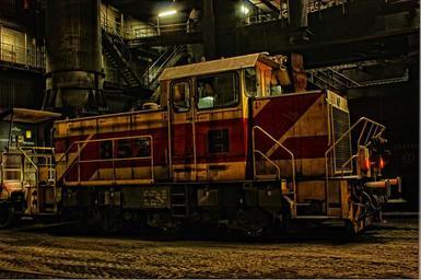 Keywords: locomotive switcher loco seemed hdr railway train industry night photograph yellow red hard strong heavyweight draws presses