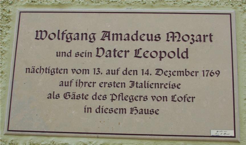 | Keywords: Lofer Pfleggericht 2.png Pfleggericht Denkmalgeschütztes Objekt Österreich 7476 own 2011-10-06 Pinzgauer <span class signature-talk >talk</span> Cc-by-sa-3 0-at Cc-zero Cultural heritage monuments in Lofer Pfleggericht Lofer Plaques to Wolfgang Amadeus Mozart Plaques in Salzburg state |