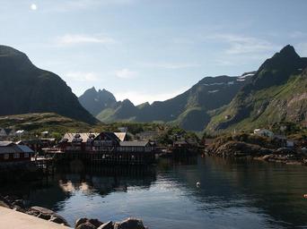 Keywords: lofoten arctic norway sea village fjord mountain rorbuer sky