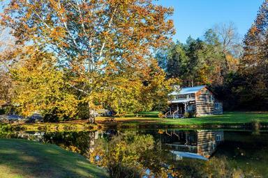Keywords: log cabin west virginia pond lake reflections trees landscape scenic nature outside outdoors house home idyll beautiful
