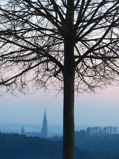 Keywords: log tree aesthetic branches symmetrical growth landscape nature outlook ulm ulm cathedral münster city haze fog winter wintry