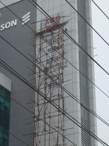 | Keywords: Logica CMG renamed to CGI.JPG en A ladder set to replace Logica's logo on its building after it has been acquired by CGI near Mahadevapura on Ouer Ring Road ORR Bangalore own Veera sj 2013-01-19 Mahadevapura Signboards in Bangalore Scaffolding in India CGI Group Cc-zero |