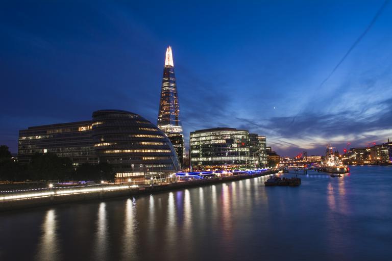 Keywords: london sunset skyline england outdoor waterfront water city architecture The Shard and the Mayor of London building The Shard and the Mayor of London building