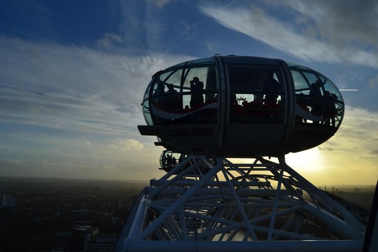 Keywords: london eye ferris wheel london sunset sky clouds gondola