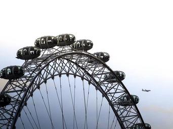 Keywords: london london eye skyline england city united kingdom ferris wheel landmark sky aircraft outlook
