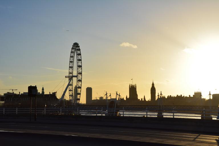 Keywords: london sunset ferris wheel abendstimmung united kingdom places of interest sky