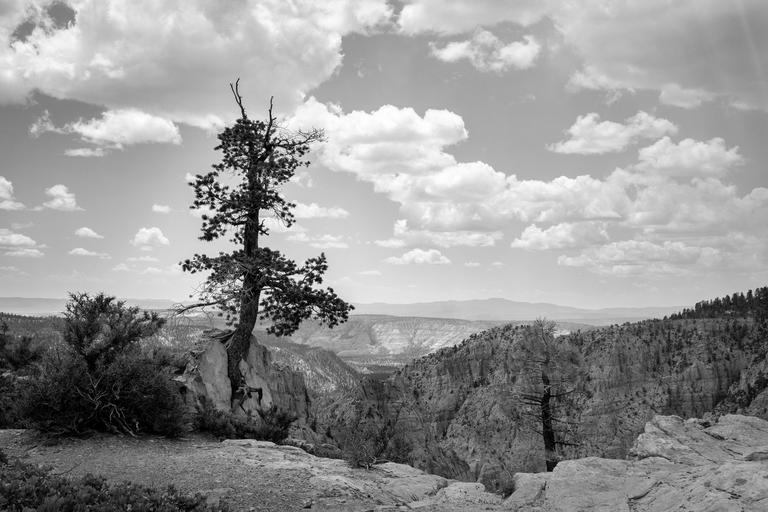 Keywords: lone tree mountains sky lonely clouds crags rugged landscape black and white