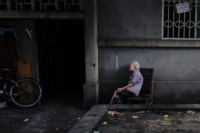 Keywords: lonely granny ao retirement street china people chair