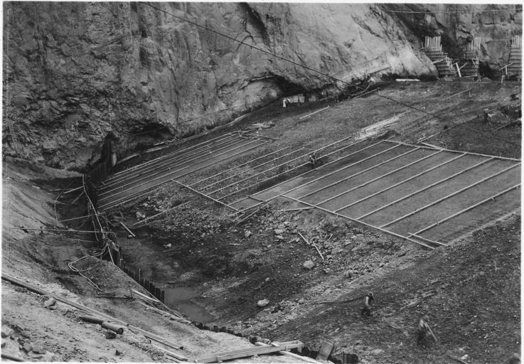 | Keywords: Looking downstream against upstream face of upstream cofferdam showing concrete surfacing in progress on Nevada end.... - NARA - 293794.jpg Scope and content Photograph from Volume Two of a series of photo albums documenting the construction of Hoover Dam Boulder City Nevada General notes 293794 Local identifier Department of the Interior Bureau of Reclamation Engineering and Research Center 05/18/1981 - 03/04/1988 NARA's Rocky Mountain Region Denver NRGA Building 48 Denver Federal Center West 6th Avenue and Kipling Street Denver CO 80225-0307 1933-02-06 Record group Record Group 115 Records of the Bureau of Reclamation 1889 - 2008 Record group ARC 444 Photograph albums compiled 1903 - 1972 Series ARC 293611 File unit File unit ARC Variant control numbers NAIL Control Number NRG-115-CONSTPHO85006-BC21521 Other versions <gallery> File Looking downstream against upstream face of upstream cofferdam showing concrete surfacing in progress on Nevada end - NARA - 293794 tiff tif File Looking downstream against upstream face of upstream cofferdam showing concrete surfacing in progress on Nevada end - NARA - 293794 jpg jpg </gallery> NARA-cooperation PD-USGov Construction of the Hoover Dam |