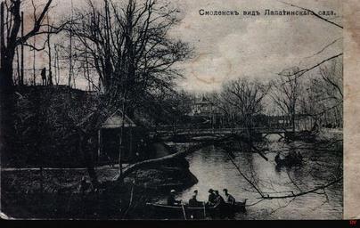 | Keywords: Lopatinskiy garden 1.jpg en Lopatinsky garden in Smolensk In the foreground - a pond with boats on the other side - the remains of royal bastion in the background - a bridge across the pond now rebuilt ru Лопатинский сад в Смоленске а пе еднем плане - п уд с лодками на д угом бе егу - остатки ко олевского бастиона на заднем плане - мост че ез п уд ныне пе ест оен О игинальная отк ытка е установлены before 1917 года PD-RusEmpire 20th-century postcards Postcards of Smolensk Lopatinsky garden |