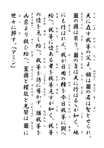 | Keywords: LordsPrayerJapaneseSeikyo.svg en The Lord's Prayer translated into Classical Japanese language by Saint Nicholas of Japan and Paul Nakai Tsugumaro ru Π ΠΎΠ»ΠΈΡΠ²Π° ΠΠΎΡΠΏΠΎΠ΄Π½Ρ Π² ΠΏΠ΅Ρ Π΅Π²ΠΎΠ΄Π΅ Π½Π° ΡΡΠ°Ρ ΠΎΠΏΠΈΡΡΠΌΠ΅Π½Π½ΡΠΉ ΡΠΏΠΎΠ½ΡΠΊΠΈΠΉ ΡΠ·ΡΠΊ Π²ΡΠΏΠΎΠ»Π½Π΅Π½Π½ΠΎΠΌ Π‘Π²ΡΡΠΈΡΠ΅Π»Π΅ΠΌ Π ΠΈΠΊΠΎΠ»Π°Π΅ΠΌ Π―ΠΏΠΎΠ½ΡΠΊΠΈΠΌ ΠΈ ΠΠ°Π²Π»ΠΎΠΌ Π Π°ΠΊΠ°ΠΈ Π¦ΡΠ³ΡΠΌΠ°Ρ ΠΎ 2016-11-27 own ΠΠ°Π²Π»ΠΎ ΠΠ΅ΡΠΌΠ°Π½ΡΠ΅Π² other versions cc-zero Lord's Prayer Japanese language Nicholas of Japan Tsugumaro Nakai |