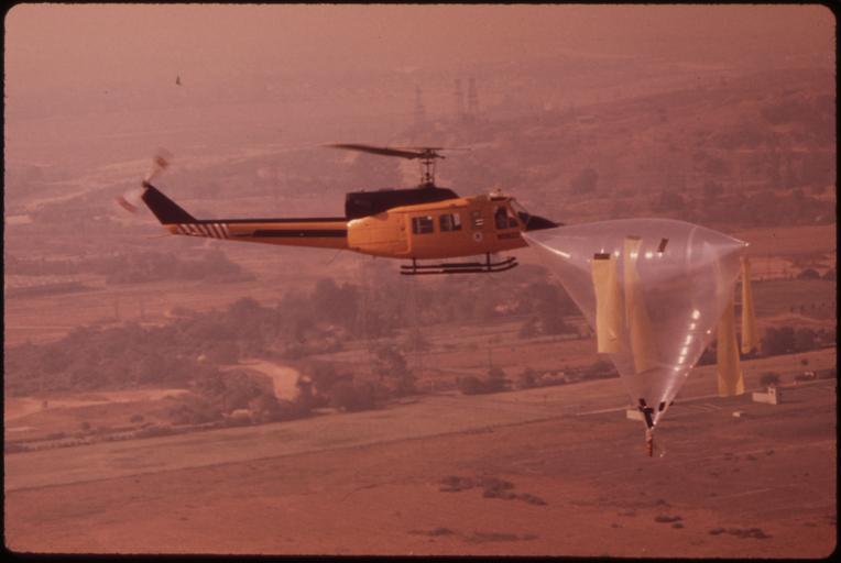 | Keywords: LOS ANGELES REACTIVE POLLUTANT PROGRAM (LARPP), A UNIQUE MULTI-AGENCY AIR POLLUTION RESEARCH STUDY SPONSORED BY THE... - NARA - 552372.jpg LOS ANGELES REACTIVE POLLUTANT PROGRAM LARPP ” A UNIQUE MULTI-AGENCY AIR POLLUTION RESEARCH STUDY SPONSORED BY THE COORDINATING RESEARCH COUNCIL A GOVERNMENT-INDUSTRY RESEARCH GROUP Scope and content LOS ANGELES REACTIVE POLLUTANT PROGRAM LARPP A UNIQUE MULTI-AGENCY AIR POLLUTION RESEARCH STUDY SPONSORED BY THE COORDINATING RESEARCH COUNCIL A GOVERNMENT-INDUSTRY RESEARCH GROUP USED IN THE PROJECT ARE THERMASONDES WEATHER-TESTING BALLOONS TETROONS AIRBORNE BUOYS USED TO MARK OFF GIVEN SECTIONS OF AIR FOR STUDY AND EPA HELICOPTERS FOR TRACING AND TAKING SAMPLES GROUND LEVEL SAMPLES ARE ALSO TAKEN INFORMATION IS TRANSMITTED BY RADAR FLYING IN A SQUARE PATTERN AROUND CENTROID OF THE TRIANGLE MADE BY THE TETROONS HELICOPTER PASSES TETROON IN MIDAIR TETROONS ARE MADE OF CLEAR PLASTIC AND FILLED WITH HELIUM THEY MEASURE ABOUT 6 OR 7 FEET IN HEIGHT IT IS RARELY THAT A HELICOPTER PASSES AS CLOSE TO A TETROON AS THIS General notes 552372 Local identifier 412-DA-9887 Environmental Protection Agency 12/02/1970 - NARA-Author Daniels Gene photographer Photographer 8463941 <br /> Los Angeles Los Angeles county California United States North and Central America inhabited place 4219264 34 05 -118 23 <br /> Still Picture Records Section Special Media Archives Services Division NWCS-S National Archives at College Park 8601 Adelphi Road College Park MD 20740-6001 09/1973 Record group Record Group 412 Records of the Environmental Protection Agency 1944 - 2006 Record group ARC 708 DOCUMERICA The Environmental Protection Agency's Program to Photographically Document Subjects of Environmental Concern compiled 1972 - 1977 Series ARC 542493 File unit File unit ARC Variant control numbers Agency-Assigned Identifier 165/47/009887<br /> NAIL Control Number NWDNS-412-DA-9887 Other versions <gallery> File LOS_ANGELES_REACTIVE_POLLUTANT_PROGRAM_ LARPP _A_UNIQUE_MULTI-AGENCY_AIR_POLLUTION_RESEARCH_STUDY_SPONSORED_BY_THE _-_NARA_-_552372 tif tif File LOS_ANGELES_REACTIVE_POLLUTANT_PROGRAM_ LARPP _A_UNIQUE_MULTI-AGENCY_AIR_POLLUTION_RESEARCH_STUDY_SPONSORED_BY_THE _-_NARA_-_552372 jpg jpg </gallery> NARA images of California - NARA-cooperation PD-USGov Los Angeles Reactive Pollutant Program 73 Helicopters of the Environmental Protection Agency Bell 212 Tetroons 1973 in Los Angeles |