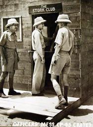 MAKE A MEME View Large Image ...East Asian Theatre, WWII. Officers entering their mess, a version of their famous Stork club, which is constructed of used airplane crates, 1942-43. Office of War Information Photograph. Courtesy of the Library of Congress. (2016/07/01). ...