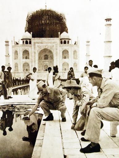 | Keywords: Lot-11627-7: South-East Asian Theatre, WWII. Agra (vicinity), India. Private First Class John C. Byrom, Jr. trying to catch a goldfish in the marble-lined pool at the approach of the Taj Mahal. Observing are Corporal Anthony J. Scopelliti and Private First Class Ray Cherry, 1942. U.S. Army Photograph from the Office of War Information Collection. Courtesy of the Library of Congress. (2016/07/01). Lot-11627-7: South-East Asian Theatre, WWII. Agra (vicinity), India. Private First Class John C. Byrom, Jr. trying to catch a goldfish in the marble-lined pool at the approach of the Taj Mahal. Observing are Corporal Anthony J. Scopelliti and Private First Class Ray Cherry, 1942. U.S. Army Photograph from the Office of War Information Collection. Courtesy of the Library of Congress. (2016/07/01). |