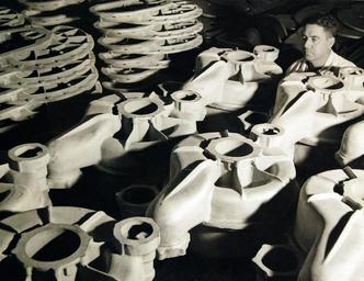 Keywords: Lot-2147-3: Packard Motor Car Company, Detroit, Michigan, May 1941. The worker is checking impeller casings for 1200 horse power engine for torpedo boats. In the left background are large aluminum supercharger gear housings. The right background shows a pile of steel reverse gear crankshaft flanges. Photographed by Alfred T. Palmer, Office of War Information Photograph. Courtesy of the Library of Congress. (2016/04/22). Lot-2147-3: Packard Motor Car Company, Detroit, Michigan, May 1941. The worker is checking impeller casings for 1200 horse power engine for torpedo boats. In the left background are large aluminum supercharger gear housings. The right background shows a pile of steel reverse gear crankshaft flanges. Photographed by Alfred T. Palmer, Office of War Information Photograph. Courtesy of the Library of Congress. (2016/04/22).