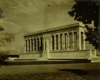 Keywords: architecture colonnade monochrome Lot 6591-23: American Memorial near Chateau-Thierry, France. This memorial, located on Hill 204, west of Chateau-Thierry, commemorates the services of the American forces which stopped the German advance on Paris in July 1918, and later, in conjunction with the French armies, reduced the Marne Salient and turned the tide of the battle in favor of the Allies. Shown: West Face – American Memorial – Chateau Thierry. President Franklin D. Roosevelt Collection-Photograph Album presented by General John J. Pershing, USA (Ret.), Chairman, American Battle Monuments Commission. The photographs in the collection were taken in 1923 to show the memorials erected by the American Battle Monuments Commission. Photographed through Mylar sleeve. (2015/10/09). Lot 6591-23: American Memorial near Chateau-Thierry, France. This memorial, located on Hill 204, west of Chateau-Thierry, commemorates the services of the American forces which stopped the German advance on Paris in July 1918, and later, in conjunction with the French armies, reduced the Marne Salient and turned the tide of the battle in favor of the Allies. Shown: West Face – American Memorial – Chateau Thierry. President Franklin D. Roosevelt Collection-Photograph Album presented by General John J. Pershing, USA (Ret.), Chairman, American Battle Monuments Commission. The photographs in the collection were taken in 1923 to show the memorials erected by the American Battle Monuments Commission. Photographed through Mylar sleeve. (2015/10/09). |