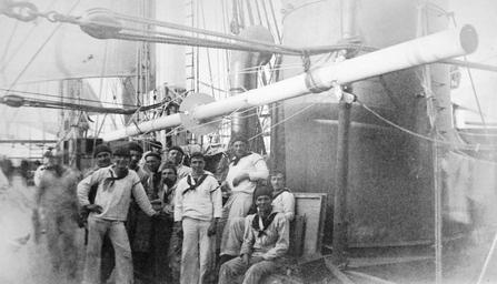 Keywords: blackandwhite monochrome black and white Lot 7360-3: U.S. Navy Expedition to observe the 1889 solar eclipse from Africa. USS Pensacola, screw steamer, enlisted crew on deck. Photographed by Herman S. Davis, who was the assistant astronomer of the expedition. (8/21/2015). Lot 7360-3: U.S. Navy Expedition to observe the 1889 solar eclipse from Africa. USS Pensacola, screw steamer, enlisted crew on deck. Photographed by Herman S. Davis, who was the assistant astronomer of the expedition. (8/21/2015). |