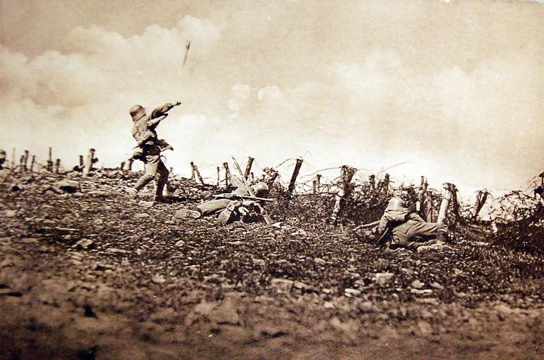 | Keywords: outdoor Lot-7676-1-2: WWI, German Activities. Translated from German: “From the western front: Hand Grenade Being Launched.” Courtesy of the Library of Congress. (2016/09/02). Lot-7676-1-2: WWI, German Activities. Translated from German: “From the western front: Hand Grenade Being Launched.” Courtesy of the Library of Congress. (2016/09/02). |