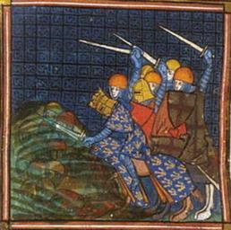 | Keywords: Lothaire vs Otto2.jpg British Library Royal 16 G VI f 257v de Lothar von Frankreich treibt das Heer Kaiser Ottos II in die Aisne British Library Royal 16 G VI f 257v http //www bl uk/catalogues/illuminatedmanuscripts/ILLUMIN ASP Size mid IllID 44031 Chroniques de Saint-Denis 14th Century after 1332 before 1350 PD-old Lothair of France Otto II Holy Roman Emperor Chroniques de France ou de St Denis 1332-1350 - BL Royal MS 16 G VI 257v | ||||