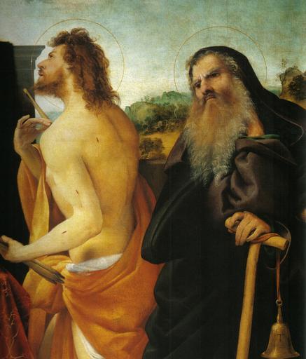 | Keywords: Lotto, pala di santo spirito 03.jpg Artwork title Madonna and Child with detail Sebastian and Antonius der Große Antonius Abbas Oil Canvas cm 287 268 Institution Church of Santo Spirito Bergamo scan from Carlo Pirovano Lotto Electa Milano 2002 1521 Creator Lorenzo Lotto http //mail wikipedia org/pipermail/wikide-l/2005-April/012195 html Other versions PD-old-100 Santo Spirito Altarpiece Paintings of Saint Stephen Paintings of Saint Anthony the Great | ||||