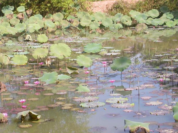 Keywords: Lotus 5.jpg Lotus Nelumbo nucifera leaves on stems above water and water-lily Nymphaea sp floating leaves and flowers Thailand Own date Love Krittaya Nelumbo nucifera Nymphaea rubra Flowers in Thailand