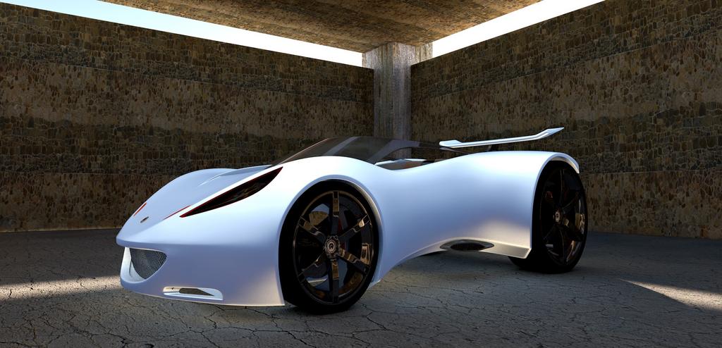 Keywords: lotus autos sports car prototype study funtime silver automobile contour metallic afternoon shadow hall concrete wall monochrome 3d 3d model computer graphics machine 3d visualization pirohd rendering