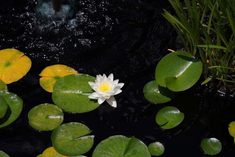 Keywords: lotus lily pad pond water lily white flower aquatic waterlily black water