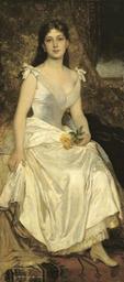 | Keywords: Lotz Ilona Lotz in White 1880s.jpg Artwork Creator Károly Lotz s 1880 Oil on canvas Size cm 75 4 168 7 Institution Hungarian National Gallery object history exhibition history credit line accession number 3524 http //www mng hu/ Hungarian National Gallery http //www mng hu/en/search/774 Info http //www mng hu/isztar/FEO/L/FEO000774 jpg Pic PD-old-100 DEFAULTSORT 1880s; Ilona Lotz by Lotz Portrait paintings by Károly Lotz Paintings by Károly Lotz in the Hungarian National Gallery 19th-century portrait paintings in the Hungarian National Gallery 1880s dresses 1880s oil on canvas paintings Portrait 1880s paintings in Hungary 1880s portrait paintings 19th-century oil on canvas paintings in Hungary 19th-century oil portraits of sitting women at full length Décolleté in art Female shoes in portrait paintings Females with white dresses in art Portrait paintings of women holding flowers |