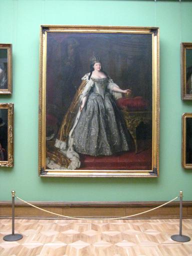 | Keywords: Louis Caravaque, Portrait of Empress Anna Ioannovna (1730) interior.jpg Artwork Creator Louis Caravaque Portrait of ru Импе ат ица Анна Иоанновна 1693 1740 дочь сводного б ата Пет а I ца я Иоанна Алексеевича в замужестве ге цогиня Ку ляндская С 1730 оссийская импе ат ица Ее изоб ажение восп оизводит тип па адного импе ато ского по т ета сложившегося в ев опейском искусстве в XVII веке в эпоху ба окко Художник помещает фигу у госуда ыни в дво цовый инте ье тщательно фикси уя все ат ибуты власти пышное ко онационное платье с накинутой на него го ностаевой мантией ко ону скипет де жаву на ба хатной подушке К упная тяжеловесная фигу а Анны Иоанновны диктует художнику монументальную композицию Внешность модели мало соответствует ее жизненному облику Княгиня Б Долго укая писала об Анне Иоанновне П ест ашнава была взо у отв атное лицо имела так была велика кагда между кавале ов идет всех галавою выше и ч езвычайно толста 1730 Oil on canvas cm 262 205 Institution Tretyakov Gallery 01 http //www tretyakovgallery ru/en/collection/_show/image/_id/409 Tretyakov Gallery object history Поступила в 1931 г из Госуда ственного Русского музея credit line accession number 25551 own photo by shakko 2011 other versions http //www tretyakovgallery ru/ru/collection/_show/image/_id/409 PD-old-100 DEFAULTSORT Caravaque Anna of Russia Anna of Russia by Caravaque 1730 Tretyakov gallery Interiors of Tretyakov Gallery Lavrushinsky 1730 portrait paintings Uploaded by Shakko/Photos |
