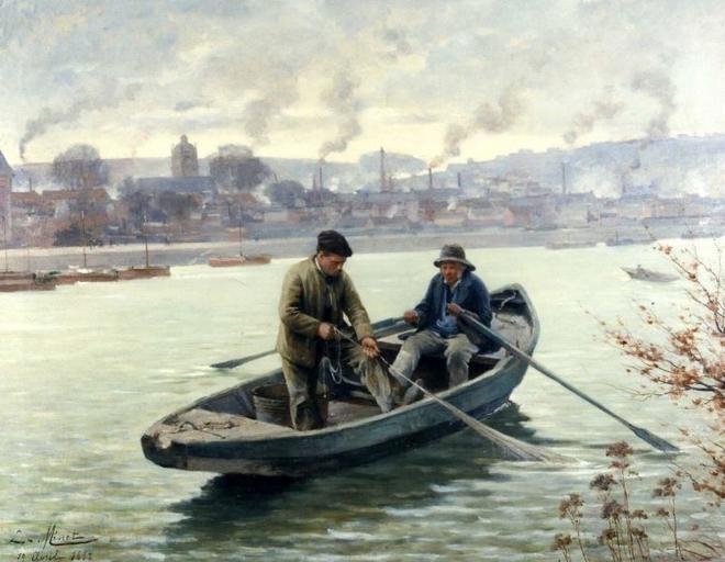 | Keywords: Louis-Émile Minet La pêche à la violette.jpg  Artwork Creator Louis-Émile Minet Two fishermen in a boat 1887 Oil on canvas Size cm 115 5 143 musée d'Elbeuf Elbeuf object history credit line accession number Joconde M1099000012 PD-old-80 19th-century paintings Paintings of men of France Musée d'Elbeuf Louis-Émile Minet Paintings of Normandy Fishing in France |