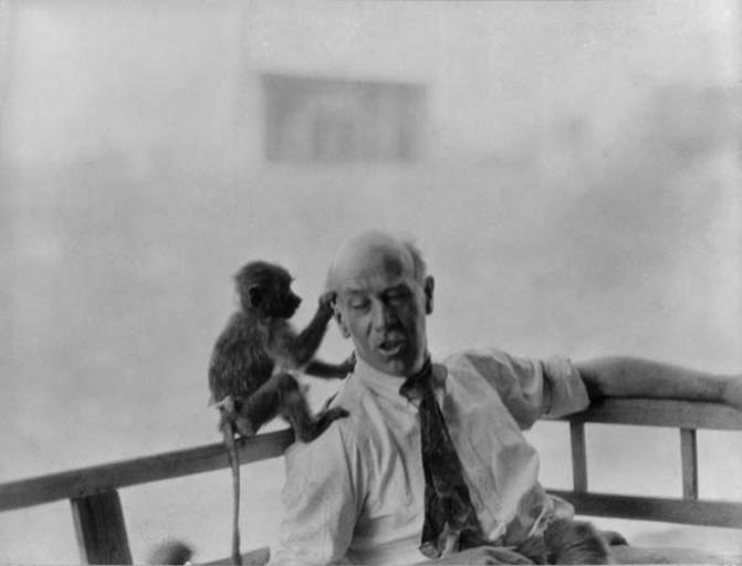 Keywords: monkey grooming baboon daily news abyssinian expedition dailynewsabyssinianexpedition expedition wilfred osgood wilfredosgood louis agassiz fuertes louisagassizfuertes c. suydam cutting csuydamcutting jack baum jackbaum alfred m. bailey alfredmbailey 1926 1927 africa ethiopia abyssinia collection mammals birds specimen collection specimencollection blackandwhite monochrome black and white Louis A. Fuertes, expedition artist, sitting on couch with a small monkey on his shoulder who appears to be grooming Fuertes. The monkey is the dog-faced baboon named Tinish, the expedition mascot. 1927. Name of Expedition: Daily News Abyssinian Expedition Participants: Wilfred Osgood, Louis Agassiz Fuertes, C. Suydam Cutting, Jack Baum, Alfred M. Bailey Expedition Start Date: September 7, 1926 Expedition End Date: May 20, 1927 Purpose or Aims: Zoology Mammals and Birds Location: Africa, Ethiopia [Abyssinia] Original material: Album print Digital Identifier: CSZ56119 Learn more about The Field Museum's Library Photo Archives. Louis A. Fuertes, expedition artist, sitting on couch with a small monkey on his shoulder who appears to be grooming Fuertes. The monkey is the dog-faced baboon named Tinish, the expedition mascot. 1927. Name of Expedition: Daily News Abyssinian Expedition Participants: Wilfred Osgood, Louis Agassiz Fuertes, C. Suydam Cutting, Jack Baum, Alfred M. Bailey Expedition Start Date: September 7, 1926 Expedition End Date: May 20, 1927 Purpose or Aims: Zoology Mammals and Birds Location: Africa, Ethiopia [Abyssinia] Original material: Album print Digital Identifier: CSZ56119 Learn more about The Field Museum's Library Photo Archives. |