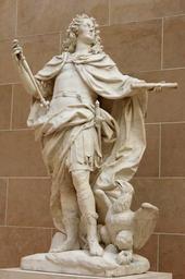 | Keywords: Louis XV Coustou Louvre MR1811.jpg  Louis XV of France as Jupiter Commissioned in 1725 by the Duke of Antin head of the French Batiments for his castle of Petit-Bourg Marble 1731 Louis XV de France en Jupiter Commandé en 1735 par le duc d'Antin directeur général des Bâtiments pour son château de Petit-Bourg Marbre 1731 H 1 95 m 6 ft 4 ¾ in W 1 20 m 3 ft 11 in D 68 cm 26 ¾ in Museum Louvre Department of Sculptures Richelieu lower ground floor Cour Puget object history credit line In the Louvre collections since 1850 accession number MR 1811 Marie-Lan Nguyen 2006 other versions <gallery> Image Marie Leszczynska Coustou Louvre MR1813 jpg Pendant statue of Maria Leszczyńska as Juno </gallery> 18th-century sculptural portraits of men 1731 French sculptures in the Louvre - Cour Puget Zeus in post-antique sculpture Aetos Dios Mythologizing sculptural portraits Jupiter Nicolas Coustou 1731 Statues of Louis XV of France 1731 Baroque sculptures in Paris |