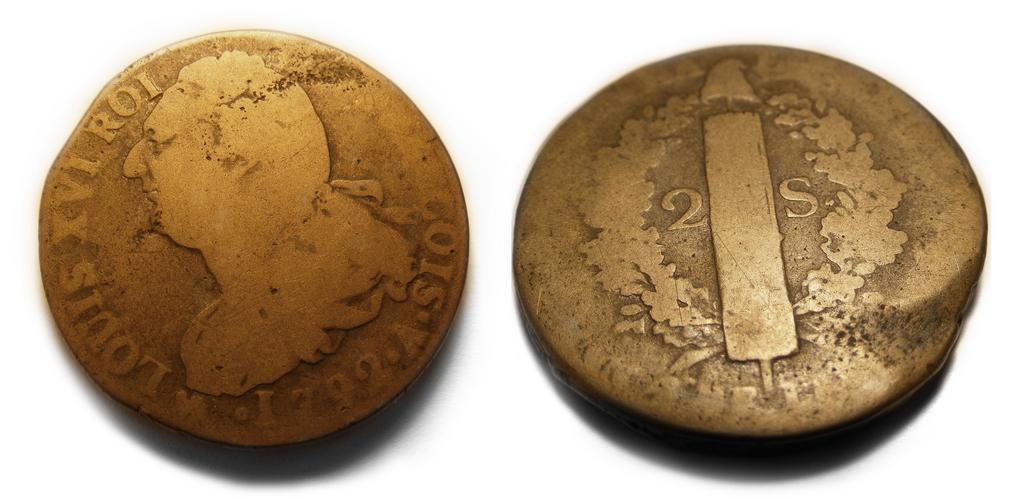 | Keywords: Louis XVI ROI wiki 2sols.jpg en This is a French Bronze Coin with Louis XVI ROI on the front dated 1792 It appears to be a 2 Sols coin The Left is the front and the image to the right is the back of the coin I am the source of this content AlliterationAbomination myself 1/28/2012 1792 coins Coins of Louis XVI of France Cc-zero |