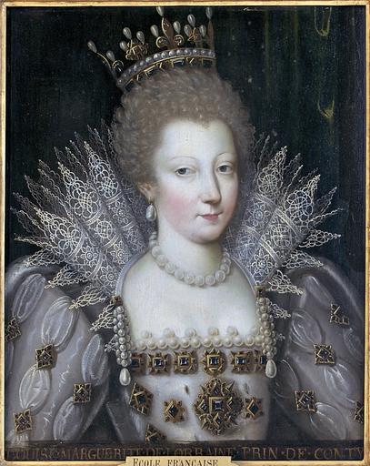 Keywords: Louise Marguerite de Lorraine Conty Anonyme Chantilly.jpg 1600 1610 Oil on panel Size cm 47 57 Institution Musée Condé 00000077271 object history Roger de Gaignières; Jean-Baptiste Colbert de Torcy; Alexandre Lenoir; George IIIè duc de Sutherland; duc d'Aumale credit line achat 1876 LOUISE MARGUERITE DE LORRAINE PRIN DE CONTY accession number PE 290 own Jebulon 2011-07-03 other versions <gallery>Circa 1610 portrait of Louise Marguerite of Lorraine as Princess of Conti wearing a crown Musée Condé jpg Château de Chantilly-Louise Marguerite de Lorraine-20120917 jpg</gallery> 49 11 39 3 N 2 29 7 8 E PD-old-100 17th-century unidentified painters from France 1600s French paintings in the Musée Condé 17th-century portrait paintings in the Musée Condé 1600s Louise Marguerite of Lorraine 1600s 17th-century oil portraits of women at bust length 1600s Crowns of princes and princesses of the blood in art Females with clothing with pearls in art 1600s Females with pearl earrings in art 1600s Females with pearl necklaces in art 1600s Lace collars in art 1600s Portrait paintings of women wearing crowns 1600s Princely crown Quality images by Jebulon Quality images of Oise Uploaded with UploadWizard QualityImage Quality images of paintings |
