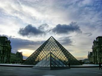 Keywords: louvres pyramid museum monument pei evening sunset france paris twilight light