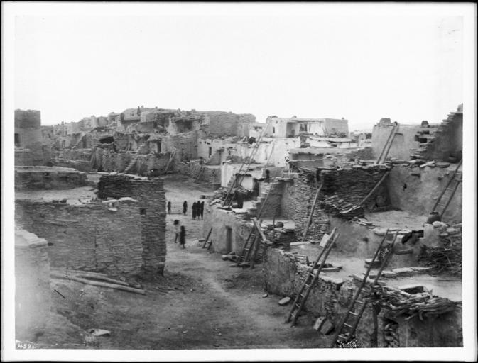Keywords: Low oblique view from above the Hopi village of Oraibi, showing terraced houses, Arizona, 1898 (CHS-4591).jpg en <br> Low oblique view from above the Hopi village of Oraibi showing terraced houses Arizona 1898 Photograph of a low oblique view from above the Hopi village of Oraibi showing terraced houses Arizona 1898 The village has many three-story houses with ladders that connect each floor The brick and adobe houses are built close to each other One half a dozen or so people stand in the middle of the village Call number CHS-4591 Legacy record ID chs-m16921; USC-1-1-1-13519 Photographer James George Wharton Filename CHS-4591 Coverage date 1898 Part of collection California Historical Society Collection 1860-1960 Type images Geographic subject city or populated place Oraibi Repository name USC Libraries Special Collections Accession number 4591 Microfiche number 1-168- Archival file chs_Volume96/CHS-4591 tiff Part of subcollection Title Insurance and Trust and C C Pierce Photography Collection 1860-1960 Repository address Doheny Memorial Library Los Angeles CA 90089-0189 Geographic subject country USA Format aacr2 3 photographs glass photonegative photoprints b w ; 17 x 22 cm 21 x 26 cm Rights Digitally reproduced by the USC Digital Library; From the California Historical Society Collection at the University of Southern California Subject adlf tribal areas Project USC Repository email specol usc edu Identifying number unidentified no James-48 Contributing entity California Historical Society Date created 1898 Publisher of the digital version University of Southern California Libraries Format aat photographic prints; photographs Geographic subject state Arizona Subject file heading Indians -- Hopi -- General Geographic coordinates -110 639717 35 876389; -110 639442 35 876389; -110 639442 35 874722; -110 639717 35 874722; -110 639717 35 876389 Format glass plate negatives Access conditions Send requests to address or e-mail given Phone 213 821-2366; fax 213 740-2343 Geographic subject county Navajo Subject lcsh Indians of North America; Hopi Indians; Dwellings 1898 date created George Wharton James 1858 1923 http //digitallibrary usc edu/cdm/ref/collection/p15799coll65/id/16842 PD-old-70-1923 Images from USC Digital Library uploaded by Fæ Photographs by George Wharton James California Historical Society Collection 1860-1960 Glass plate negatives Hopi |