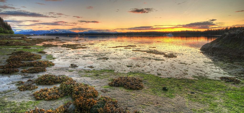 Keywords: low tide bartlett cove glacier bay alaska water sunset dusk twilight colorful landscape scenic wilderness reflection shore
