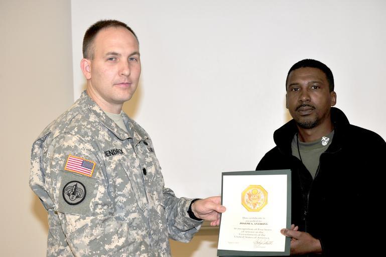 | Keywords: fort a.p. hill fortaphill aphill faph us army garrison usarmygarrison us army usarmy army army garrison armygarrison garrison army post armypost army soldier armysoldier us soldier ussoldier virginia va bowling green bowlinggreen 406th army field support battalion 406tharmyfieldsupportbattalion logistics readiness center logisticsreadinesscenter groupshot people indoor Lt. Col. Martin J. Hendrix III, commander, 406th Army Field Support Battalion, Fort Bragg, North Carolina, visited Fort A.P. Hill to recognize employees with the Logistics Readiness Center and to brief them on results of recent inspections, Dec. 3. During the town hall meeting, Hendrix presented seven time in service awards, two retirement awards and several commanders' coins to recognize all the Ammunition Support Point personnel for their on-going accomplishments. In addition, Mike Brandt was singled out and presented a U.S. Flag and 40-year pin for his years of service and dedication. The Army Field Support Battalion - Fort Bragg executes U.S. Army Materiel Command operations and provides mission command for assigned Brigade Logistics Support Teams, Logistics Assistance Program Personnel and Logistics Readiness Centers. Lt. Col. Martin J. Hendrix III, commander, 406th Army Field Support Battalion, Fort Bragg, North Carolina, visited Fort A.P. Hill to recognize employees with the Logistics Readiness Center and to brief them on results of recent inspections, Dec. 3. During the town hall meeting, Hendrix presented seven time in service awards, two retirement awards and several commanders' coins to recognize all the Ammunition Support Point personnel for their on-going accomplishments. In addition, Mike Brandt was singled out and presented a U.S. Flag and 40-year pin for his years of service and dedication. The Army Field Support Battalion - Fort Bragg executes U.S. Army Materiel Command operations and provides mission command for assigned Brigade Logistics Support Teams, Logistics Assistance Program Personnel and Logistics Readiness Centers. |