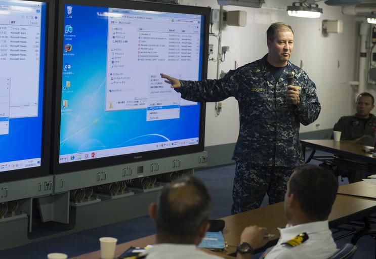 | Keywords: Lt. Cmdr. Al Deckers gives a brief during a Malabar 2016 air operations conference aboard the Japanese Maritime Self-Defense Force Hyuga-class helicopter destroyer JS Hyuga (DDH 181).jpg Lt Cmdr Al Deckers the submarine operations officer for Carrier Strike Group Three gives a brief during a Malabar 2016 air operations conference aboard the Japanese Maritime Self-Defense Force Hyuga-class helicopter destroyer JS Hyuga DDH 181 2016-06-11 http //www navy mil/management/photodb/photos/160611-N-HZ247-032 JPG Mass Communication Specialist 2nd Class Ryan J Batchelder PD-USGov-Military-Navy Malabar 2016 |