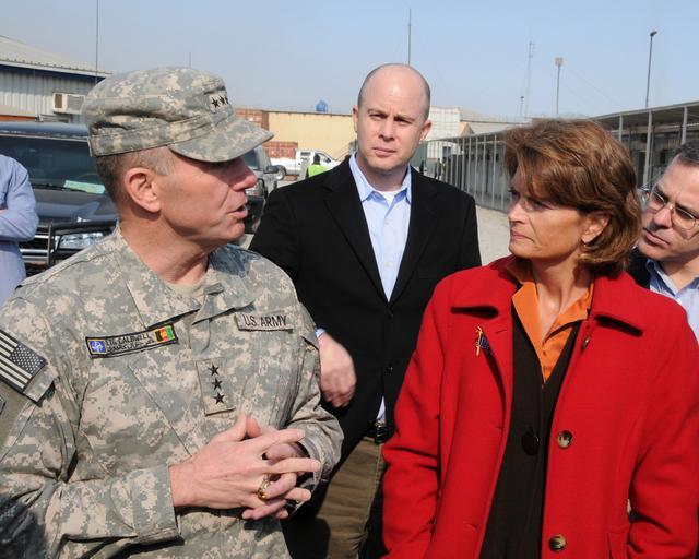 | Keywords: Lt. Gen. Caldwell talks with U.S. Senator Lisa Murkowski during a tour (4278152383).jpg 100109-N-9594C-003 “ KABUL “ Lt Gen William B Caldwell IV left Commander NATO Training Mission “ Afghanistan talks with U S Senator Lisa Murkowski during a tour of the Central Training Facility CTC Kabul on January 9 2010 Sen Murkowski was joined by Senators Roger F Wicker Mitch McConnell and Mike Crapo and Rep Michael Castle for a visit to CTC and other facilities in the area The Congressional delegation received briefings from CTC NATO Training Mission-Afghanistan NTM-A and International Security Assistance Force senior leadership and met with Afghan National Police officers while in the Kabul area The mission of NTM-A is to train the Afghan National Security Forces and enhance the Government of the Islamic Republic of Afghanistan ™s ability to achieve a stable and secure country U S Navy photo by Chief Mass Communication Specialist F Julian Carroll http //www flickr com/photos/ntm-a_cstc-a/4278152383/ Lt Gen Caldwell talks with U S Senator Lisa Murkowski during a tour Uploaded by russavia 2010-01-09 12 02 http //www flickr com/people/44825691 N08 NATO Training Mission-Afghanistan MCC SCW Francis J Carroll U S Navy photo PD-USGov-Military-Navy File Upload Bot Magnus Manske 2013-07-13 Kabul in the War in Afghanistan 2001-present Lisa Murkowski North Atlantic Treaty Organization Files from NATO Training Mission-Afghanistan Flickr stream Afghanistan photos from Flickr check needed |