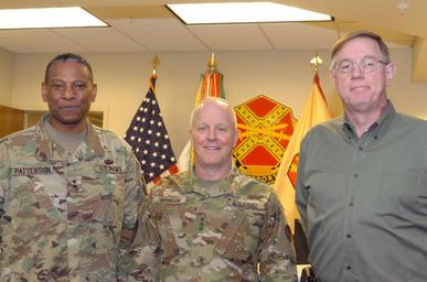 | Keywords: groupshot people Lt. Gen. Kevin Mangum (center), Deputy Commanding General and Chief of Staff for U.S. Army Training and Doctrine Command, meets Maj. Gen. LaWarren Patterson (left) and Mr. Joseph Capps (right) of U.S. Army Installation Management Command, April 19, 2016, at IMCOM Headquarters on Joint Base San Antonio, Texas. (U.S. Army photo by Geralyn Smith Noah) Lt. Gen. Kevin Mangum (center), Deputy Commanding General and Chief of Staff for U.S. Army Training and Doctrine Command, meets Maj. Gen. LaWarren Patterson (left) and Mr. Joseph Capps (right) of U.S. Army Installation Management Command, April 19, 2016, at IMCOM Headquarters on Joint Base San Antonio, Texas. (U.S. Army photo by Geralyn Smith Noah) |