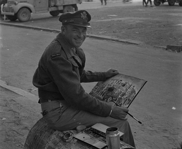 Keywords: Lt. Milton Marx.jpg en Lieutenant Milton Marx of New York City born January 11 1898 attached to the Public Relations Office of the United States Army Ninth Air Force does some painting in the streets of Tripoli 1943 1943 Library of Congress http //www loc gov/pictures/item/owi2001028101/PP/ U S Government I cropped the original image other versions PD-USGov Uploaded with UploadWizard World War II forces of the United States in Libya People of the United States Air Force 1943 in Libya Milton Marx |