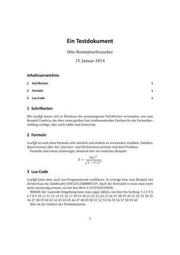 Keywords: LuaTeX Output DE.svg Aussehen einer mit LuaTeX erstellten pdf-Datei nach dem Kompilieren des Quelltextes deutschsprachige Version self created using LuaTeX-0 76 0 from Source see below 2014-01-15 svg from Lumu <span class signature-talk >talk</span> LuaTeX source <source lang latex > \documentclassa4paper scrartcl \usepackage polyglossia \setdefaultlanguagespelling new babelshorthands true german \usepackage fontspec \usepackage unicode-math \usepackage luacode \setromanfont Cambria \setsansfont Calibri \setmonofont Consolas \setmathfont Cambria Math \title Ein Testdokument \author Otto Normalverbraucher \date 15 Januar 2014 \begin document \maketitle \tableofcontents \section Schriftarten Mit Lua\TeX lassen sich in Windows die systemeigenen Schriftarten verwenden wie zum Beispiel Cambria die über einen großen Satz mathematischer Zeichen für die Formeldarstellung verfügt oder auch \textsf Calibri und \texttt Consolas \section Formeln Lua\TeX ist auch ohne Formeln sehr nützlich und einfach zu verwenden Grafiken Tabellen Querverweise aller Art Literatur- und Stichwortverzeichnis sind kein Problem Formeln sind etwas schwieriger dennoch hier ein einfaches Beispiel \begin displaymath E \frac m_ 0 c 2 \sqrt 1-v 2 /c 2 \end displaymath \section Lua-Code Lua\TeX kann aber auch Lua-Programmcode ausführen So erzeugt man zum Beispiel mit \texttt directlua die Zufallszahl \directlua tex print math random Auch die Kreiszahl \pi muss man nicht mehr auswendig wissen sie hat den Wert \directlua tex print math pi Mithilfe der \texttt luacode -Umgebung kann man sogar zählen wie hier bis Sechzig \begin luacode for x 1 60 do tex print x end \end luacode Hier ist der Schluss des Testdokuments \end document </source> Images with LaTeX source code LuaTeX |