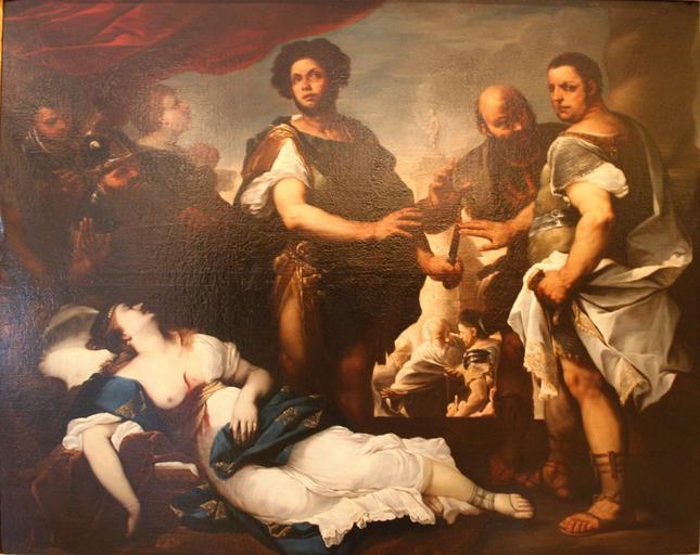 | Keywords: Luca-Giordano-Musée Calvet mort-de-Lucrèce.jpg Robert Valette Other date ~ 1660 Creator Luca Giordano Oil on canvas cm 224 281 Institution Musée Calvet Inv 21846 Object history by 1742 Joseph de Guyon de Crochans 1674-1756 LangSwitch archbishop of archevêque d' aartsbisschop van Avignon<br /> ProvenanceEvent 1934 gift LangSwitch das the au het Musée Calvet Avignon Reynaud http //www musee-calvet org/beaux-arts-archeologie/fr/oeuvre/la-mort-de-lucrece Musée Calvet d'Avignon PD-old-100 Paintings of the suicide of Lucretia History paintings Musée Calvet Giordano Luca Paintings by Luca Giordano 1660 1660s paintings 17th-century oil on canvas paintings in France People with knives |