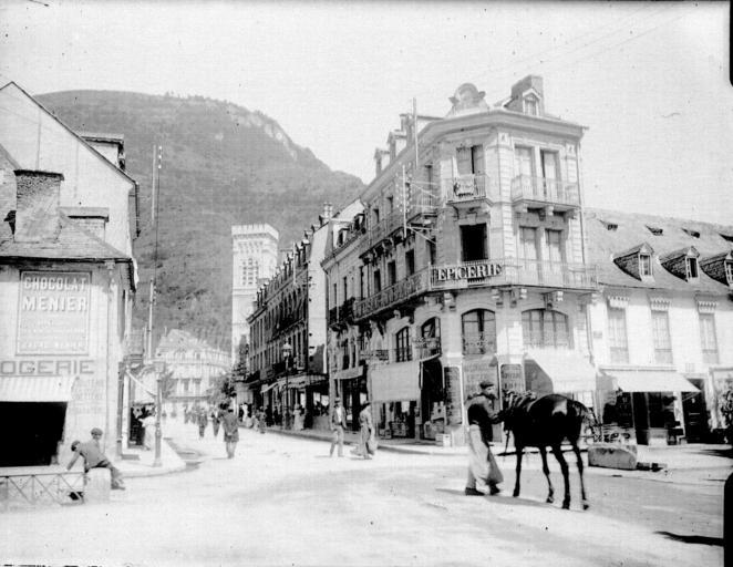 blackandwhite mountain monochrome montagne cheval town rue eglise ville façade pyrenees 1908 pyrénées drogerie épicerie hautegaronne réverbère horlogerie echoppe bagnèresdeluchon bibliothèquedetoulouse arrivingatthechurch chocolatmeunier |