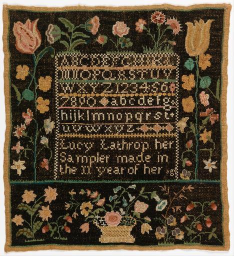 | Keywords: Lucy Lathrop - Sampler - Google Art Project.jpg ~ 1800 Lucy 6793921 Lathrop /collection/cooper-hewitt-national-design-museum/artwork/sampler-lucy-lathrop/6815704/ 147809 Lucy Lathrop /artist/lucy-lathrop/12688867/ 12688867 /collection/cooper-hewitt-national-design-museum/ Cooper-Hewitt National Design Museum 3644669 http //www cooperhewitt org/ /collection/cooper-hewitt-national-design-museum/artwork/sampler-lucy-lathrop/6815704/ 1795 ca 1800 Medium silk embroidery on linen foundationTechnique embroidered in satin eyelet cross long armed cross rococco variation chain and couching stitches on plain weave foundation 337 6815704 False 1805 1971-50-158 http //collection cooperhewitt org/view/objects/asitem/id/147809 Bequest of Marian Hague Sampler 1790 1810 w318 x h337 cm ca 1800 False 0 9140625 Object sampler-lucy-lathrop Sampler s 318 H x W 33 7 x 31 8cm 13 1/4 x 12 1/2in Lucy Lathrop her sampler made in the 11th year of her age Medium silk embroidery on linen foundationTechnique embroidered in satin eyelet cross long armed cross rococco variation chain and couching stitches on plain weave foundation Signature Lucy Lathrop her sampler made in the 11th year of her age special url_id 0AENaAWhqmYRkw PD-old-100-1923 Google Art Project works by Lucy Lathrop Textiles in the Cooper “Hewitt Smithsonian Design Museum 1800s samplers Google Art Project works in Cooper-Hewitt Smithsonian Design Museum 1800 works |