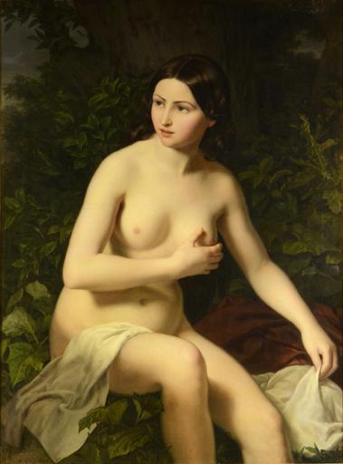 | Keywords: Ludwig Löffler - Mädchenakt.jpg Ludwig Löffler 1819 “1876 de Mädchenakt Nude dark haired girl with a stretched white fabric around her legs Right hand is resting on her chest left is lifting the drapery clothing oil canvas cm 108 79 object history credit line bottom left corner signed and dated žL Löffler 1848 accession number http //www papilio cz/en/katalog php pol 15214 Zezula Auction House Brno PD-Art-100 Ludwig Löffler Portrait paintings of women 19th-century portraits of women Paintings of adolescent girls Paintings of nude females 1848 paintings Images from Zezula Auction House |