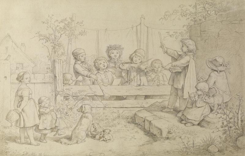 | Keywords: Ludwig Richter - Children's Orchestra - Walters 371274.jpg  Although a pupil of the Dresden Academy Richter broke away from the prevailing Romantic tradition and developed a personal vision in which he expressed nature with a sincerely pure and childlike sensibility 1861 pencil paper cm 20 3 31 7 accession number 37 1274 7249 William T Walters Baltimore date and mode of acquisition unknown Henry Walters city Baltimore Walters Art Museum Henry Walters Acquired by William T Walters German 19th Century Paintings and Drawings The Walters Art Gallery Baltimore 1983 A Medley of German Drawings The Walters Art Gallery Baltimore 1996 A Child's-Eye View The Walters Art Museum Baltimore 2006 German Drawings from the Walters Collection The Walters Art Museum Baltimore 2010-2011 place of origin Germany Walters Art Museum license 2D Ludwig Richter Media contributed by the Walters Art Museum needs category review Drawings in the Walters Art Museum |